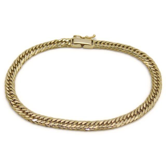 素材:K18 重量:約10.2g 長さ:約18.5cm 幅:約4.6mm 留め金具形状:中留式 付属品:無し※簡易梱包での発送となります。 状態ランク:A ※注意事項:モニターの発色具合によって、実際のものと色が異なる場合がございます。 ※真贋における問題が生じた場合は当店が責任を持って全額返金対応とさせて頂きます。 <当店の状態ランクについて> N 未使用・新品 弊社で新品未使用と判断した商品です。 (※新古品扱いとなるため、保管や移動の際に多少スレなどある場合がございます。) S ほぼ新品同様 全体的に使用感が見られず、新品同様に綺麗な中古品です。 A 使用感が少なく、かなり状態が良い 使用感が少なく、中古としてはかなり状態の良い中古品です。 B 使用感はあるが、傷や汚れが少ない 全体的に使用感・着用感が見られるものの、普通にお使いいただける中古品です。一般的な中古品となります。 C 使用感の他、傷や汚れが見られる 使用感があり、ダメージ・傷・汚れが見られる中古品ですが、価格が安くコスパが魅力となります。 D かなり大きな傷みがある難あり ダメージ・汚れが目立つ、非常に状態の悪い中古品です。割り切って考えられれば掘り出し物になるかもしれません。
