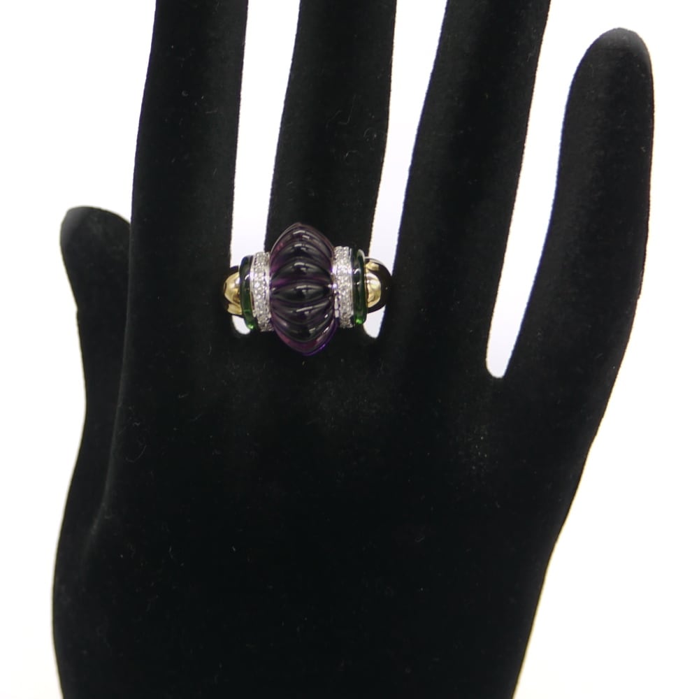 K18 アメジスト ダイヤモンド デザインリング 18金 指輪 12号 Y04622