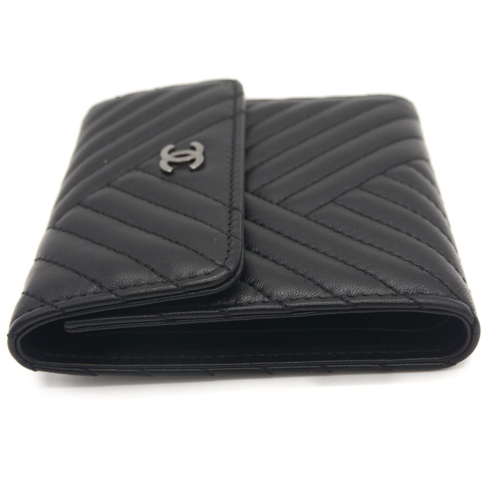 CHANEL シャネル Vステッチ コンパクトウォレット 三つ折り財布 ココマーク ラムスキン ブラック Y04716