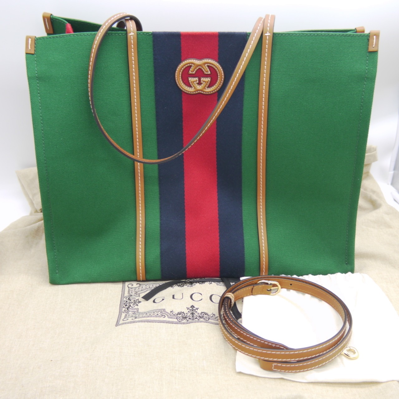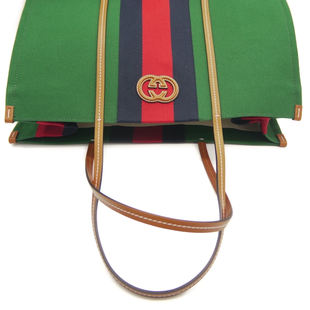 GUCCI グッチ ウェブストライプ キャンバス トートバッグ 2WAY ショルダーバッグ 727701 525040 グリーン Y04788