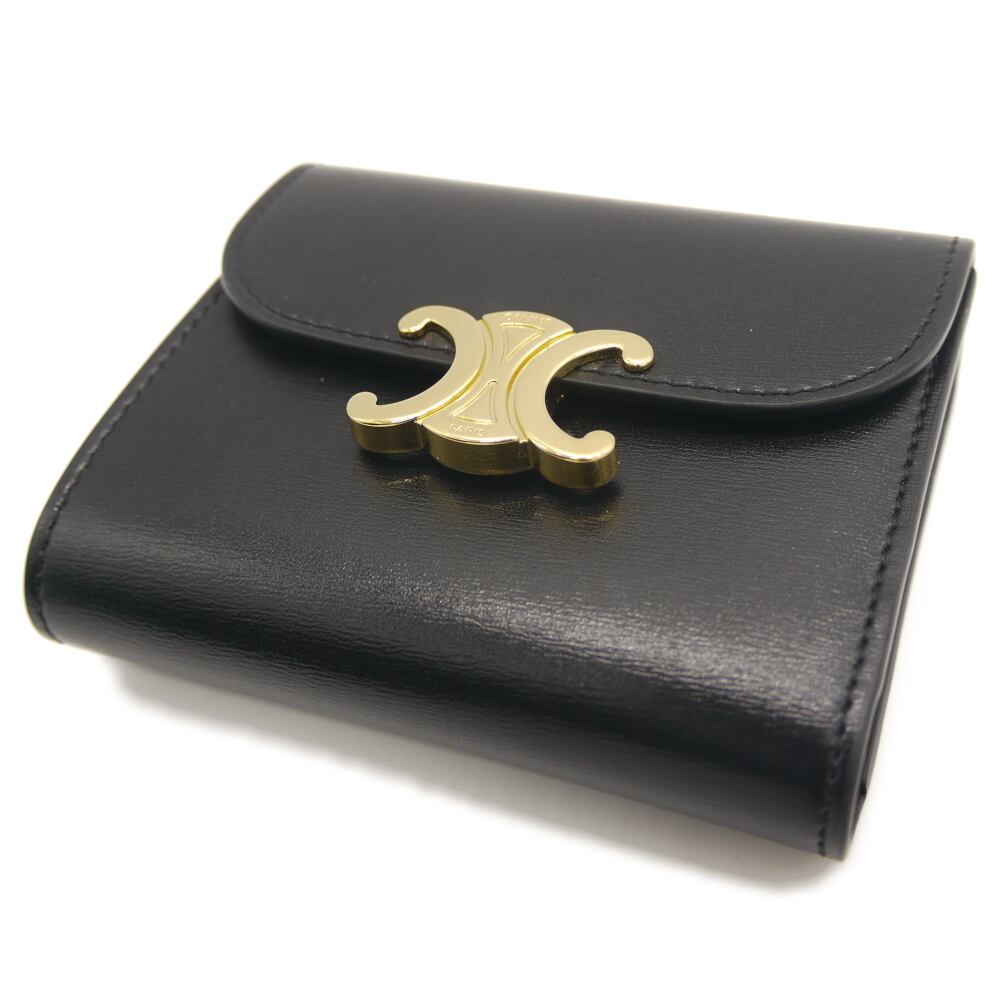 CELINE セリーヌ トリオンフ スモール フラップウォレット 三つ折り財布 ブラック 10d783dpv.38no Y04506