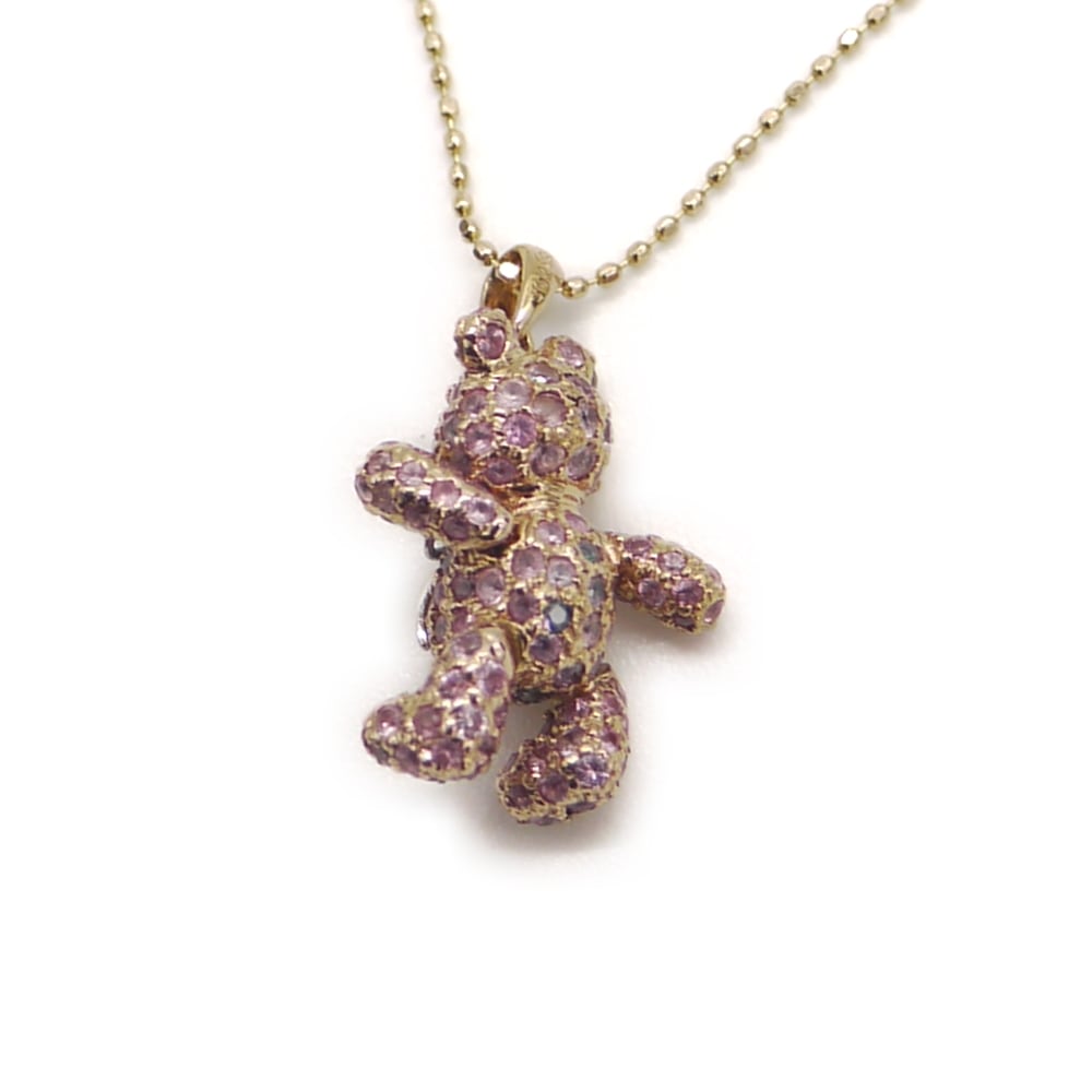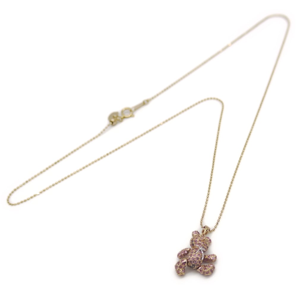 K18 サファイア 熊デザイン ペンダント ネックレス 18金 ボールチェーン Y05015
