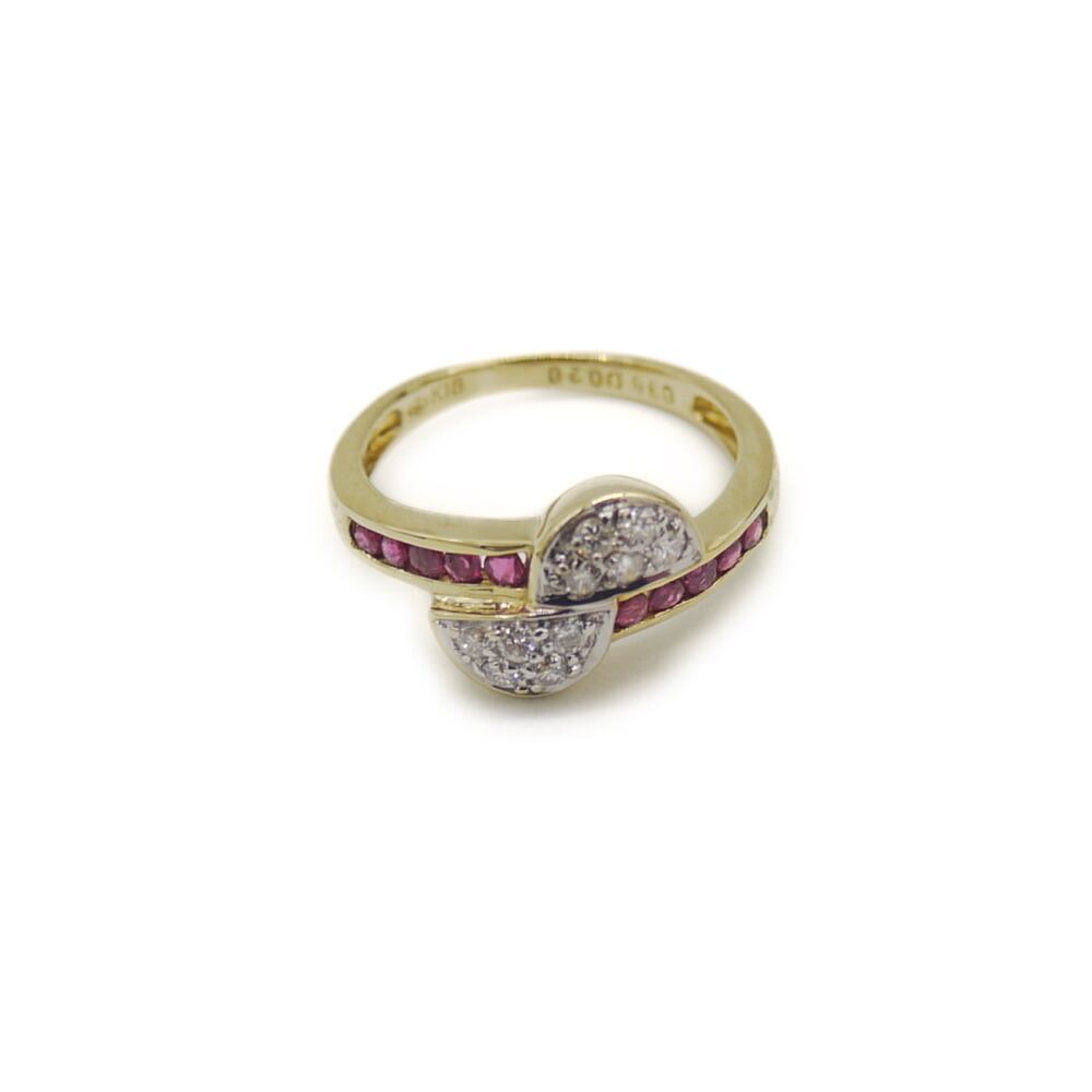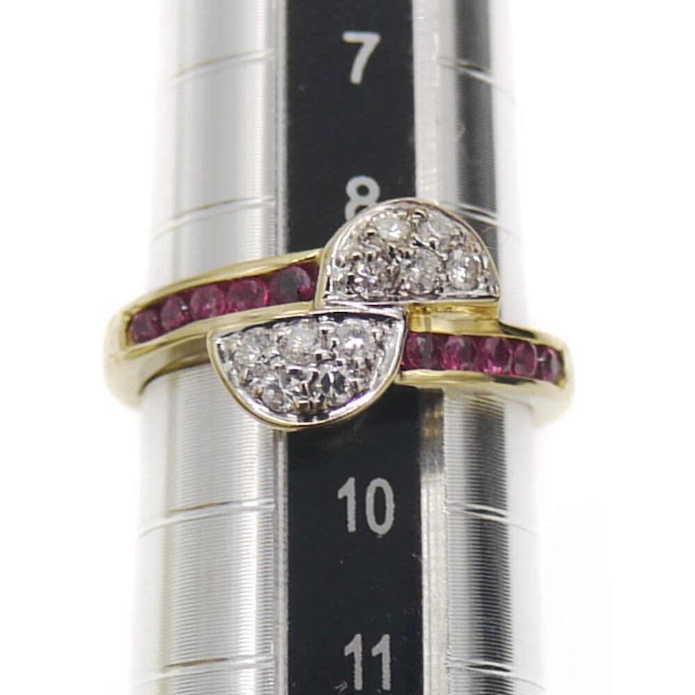 K18 ダイヤモンド ルビー デザインリング 18金 指輪 9号 Y05022