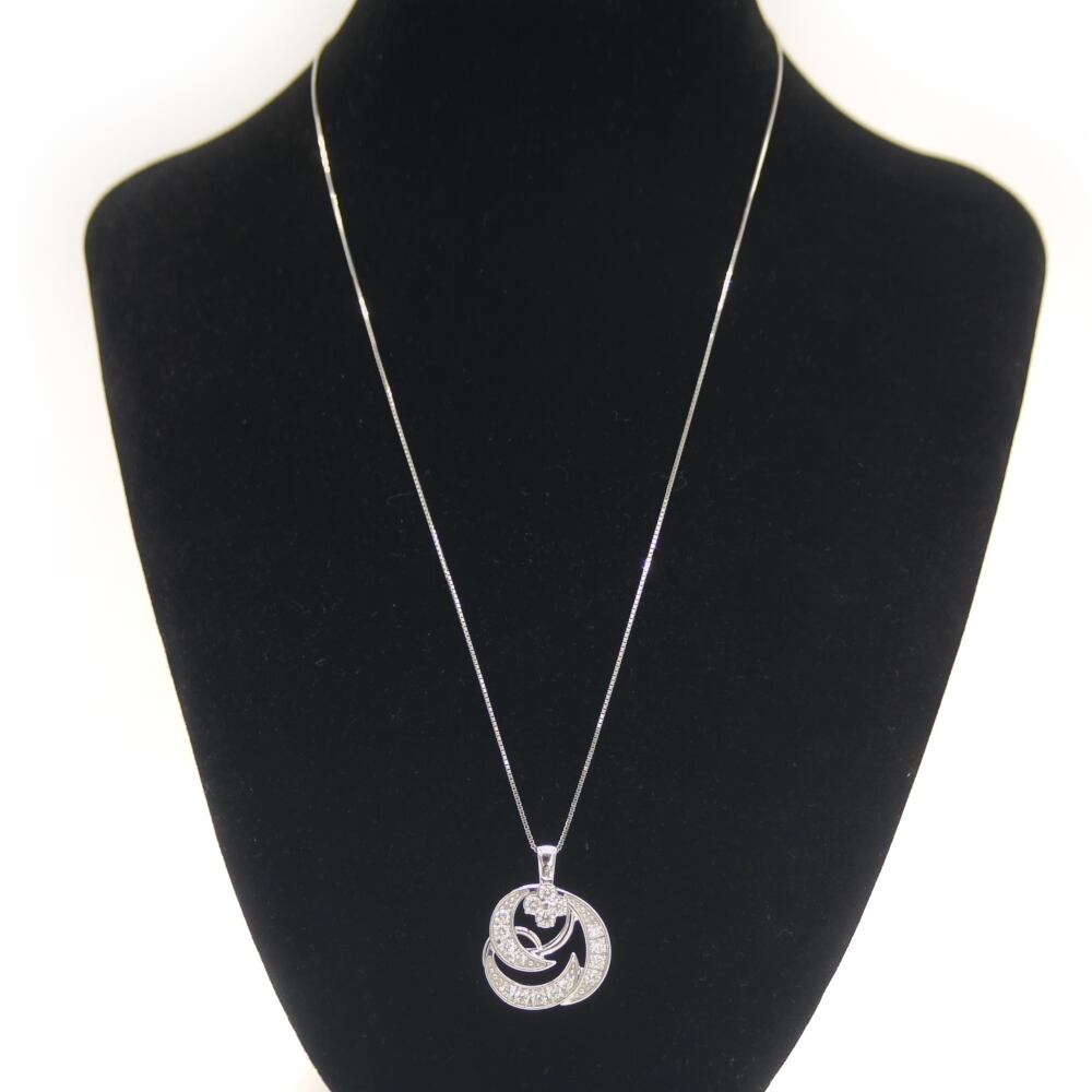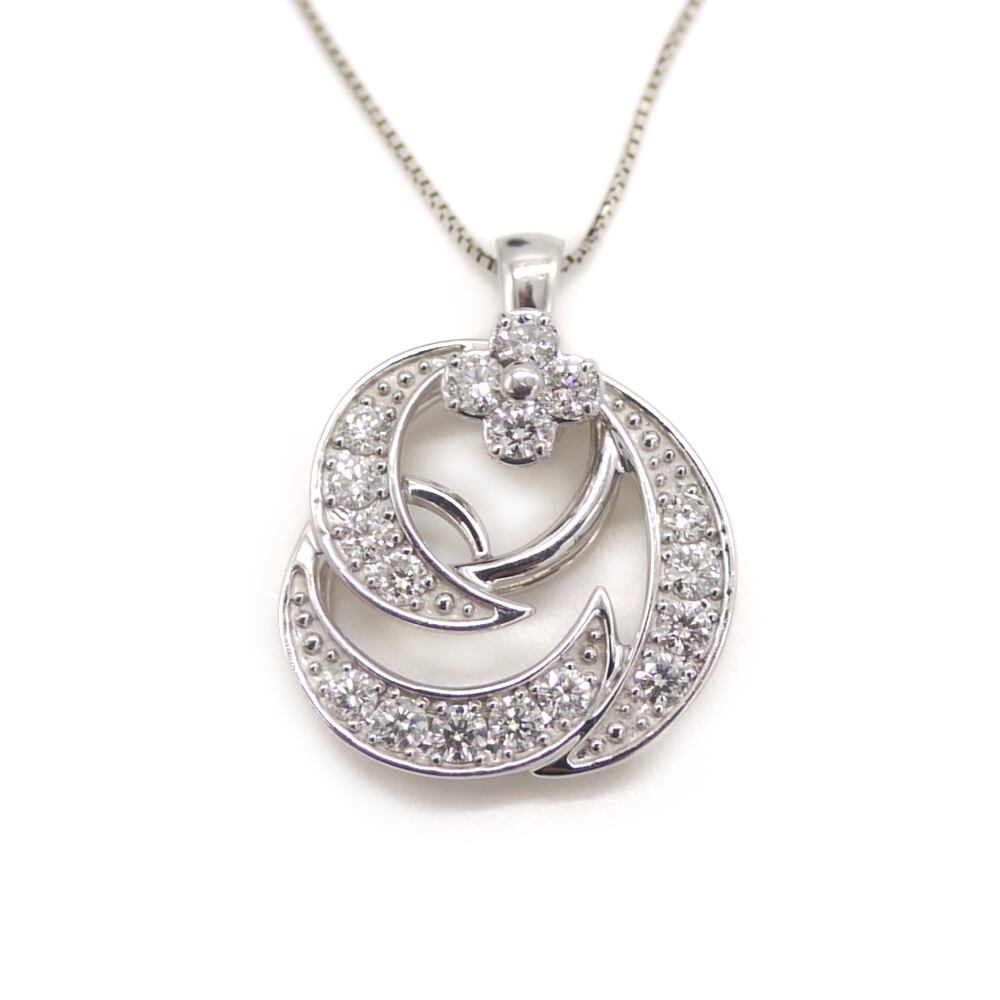 Pt900/Pt850 ダイヤモンド スイングフラワーペンダント ネックレス プラチナ ベネチアンチェーン Y04908