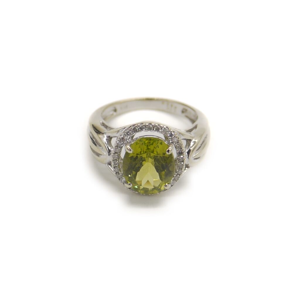 K18WG ペリドット ダイヤモンド デザインリング 18金 ホワイトゴールド 指輪 9号 Y04916