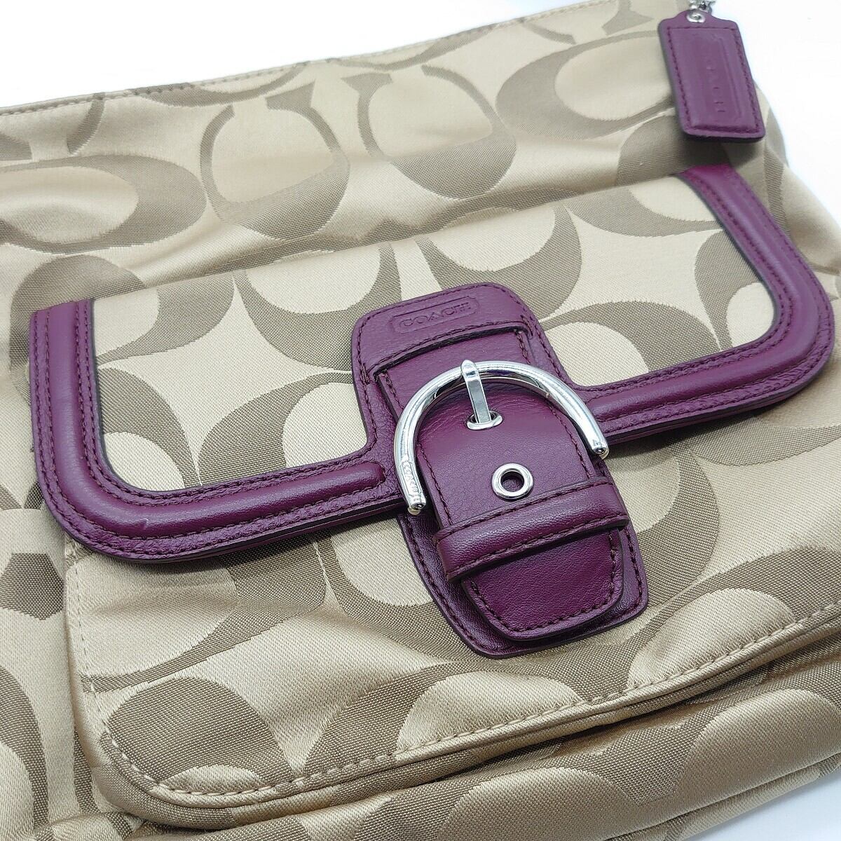 COACH コーチ ショルダーバッグ シグネチャー キャンバス カーキ×ボルドー F25288 Y00177