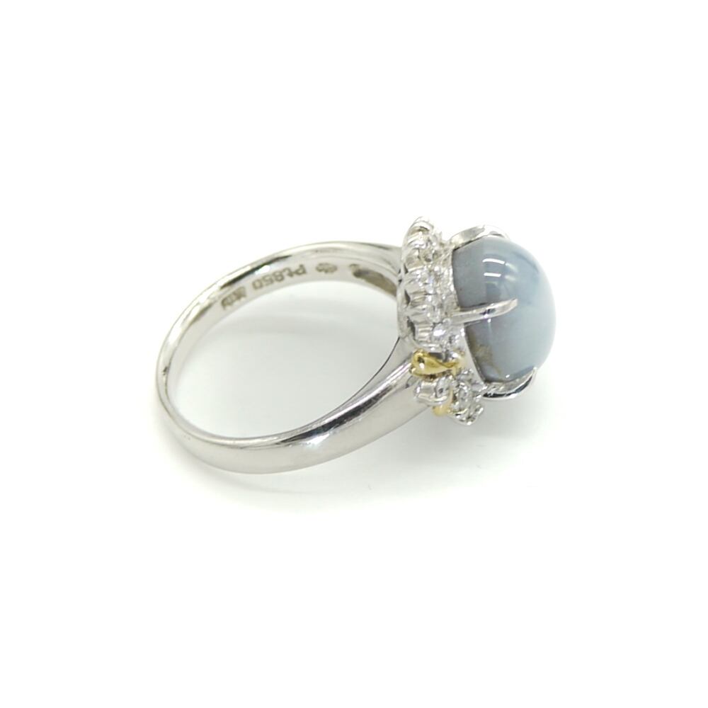 Pt850 K18 プラチナ 18金 スターサファイア ダイアモンド デザインリング 指輪 Y00625