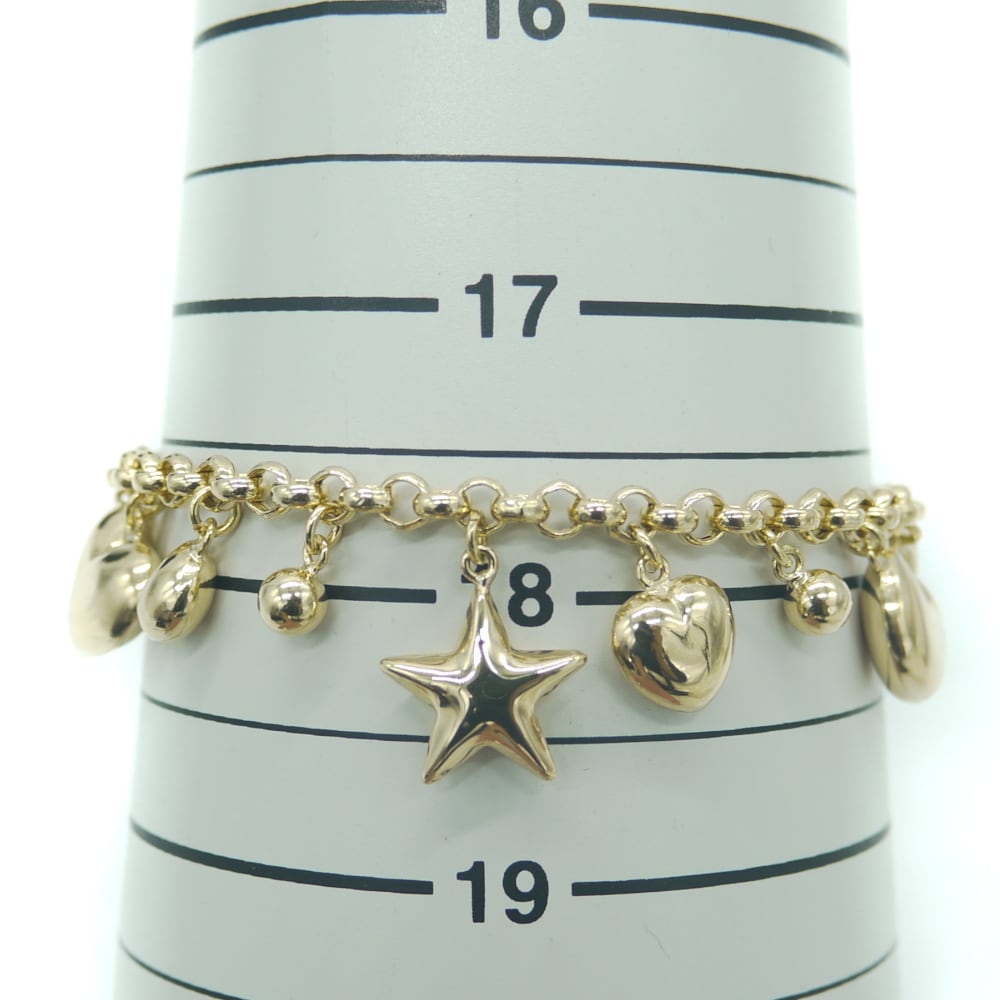 K18 チャームブレスレット 月 星 ハート 18金 アズキチェーン Y03703