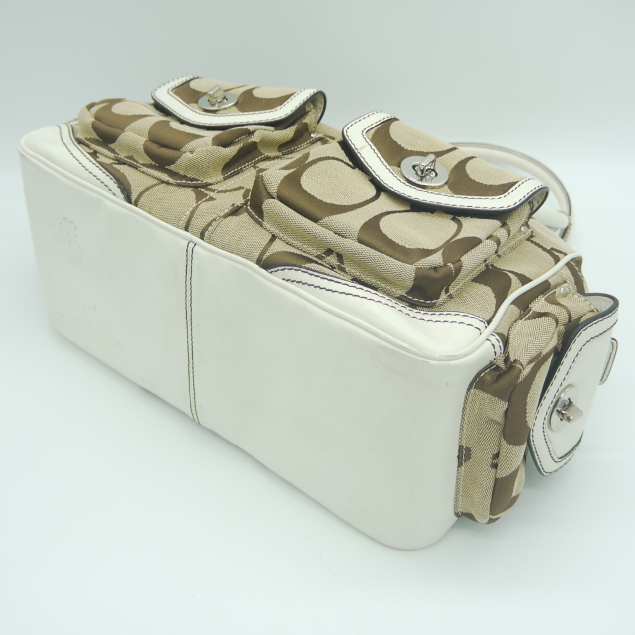 COACH コーチ ハンドバッグ ボストンバッグ シグネチャー キャンバスレザー カーキ×アイボリー 1847 Y03584