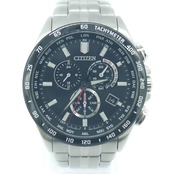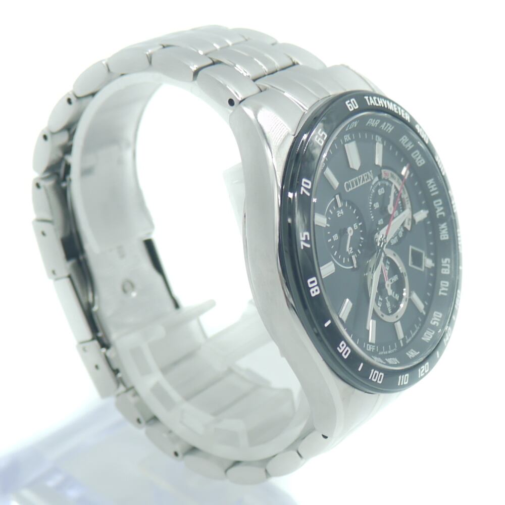 CITIZEN シチズン エコドライブ 電波時計 クロノグラフ CB5874-90E ソーラー 黒文字盤 Y04024